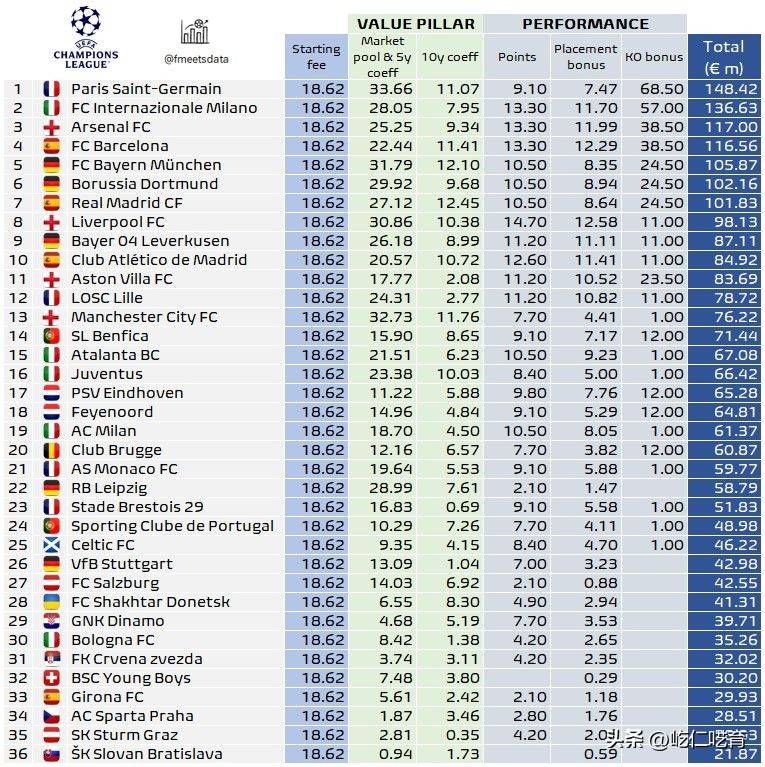 因此,从这些数据分析来看,也能理解为何历届切尔西会全力争夺世俱杯。毕竟,在上赛季参加欧战的英超球队中,尽管切尔西夺冠,他们的整体收入却是所有英超参赛队中最低的。